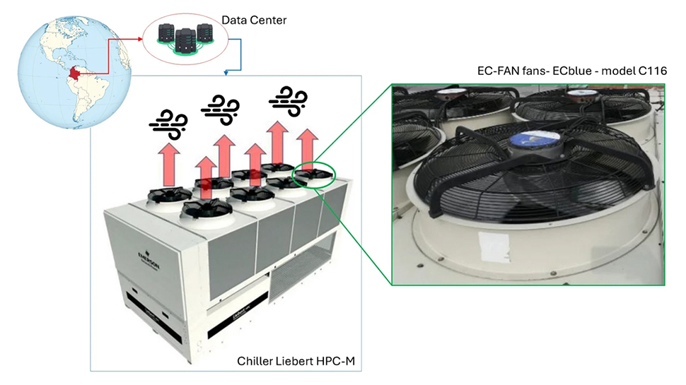 HVAC systems common in data centers expel warm air outdoors, creating a consistent, untapped wind resource that can be converted into electricity. In a case study of a Colombian data center, the researchers used vertical axis Tesup V7 wind turbines to capture this man-made waste wind. The turbines, installed atop chillers, were chosen because they minimized size and weight while maximizing electricity generation.