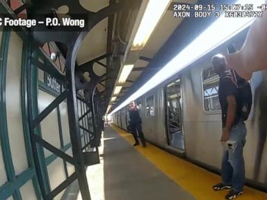 Footage of two New York City police officers opening fire at a subway station as they confronted a man holding a knife shows they fired at him as he was standing still, his arms by his side and his back to a trainOriginal Article