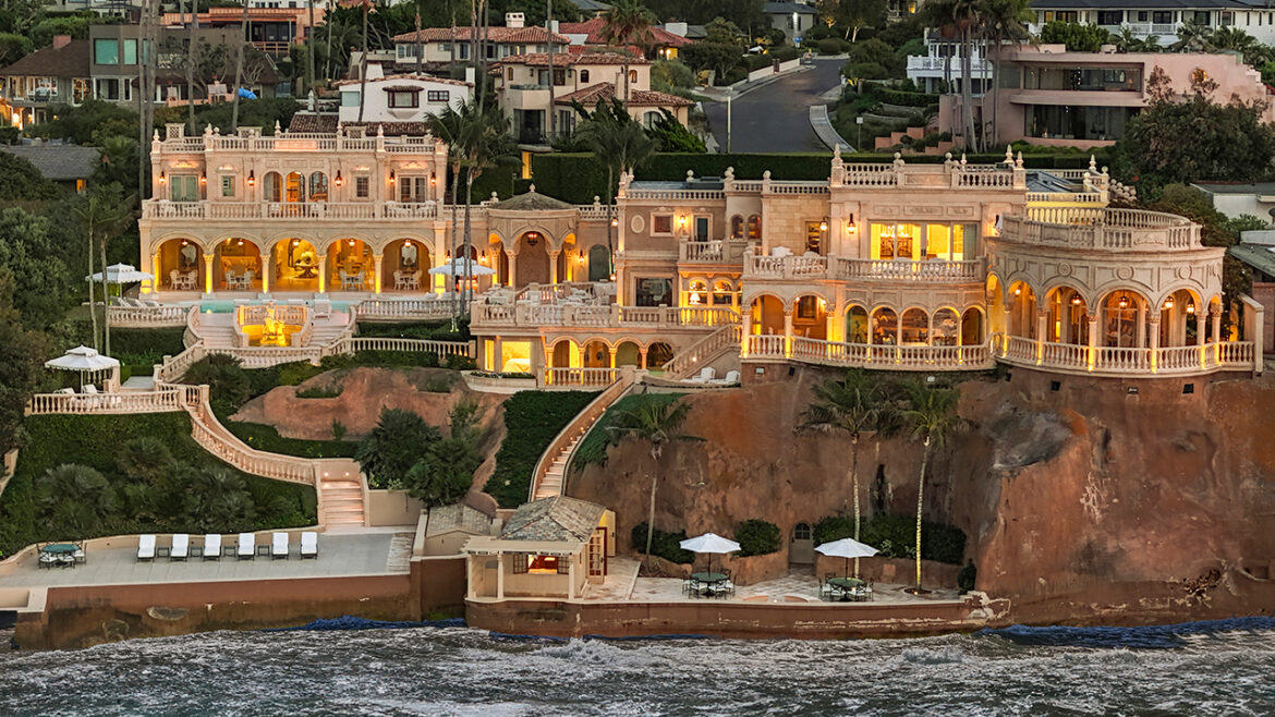 The “Sand Castle” property that brings to mind the French Riviera carries a $108 million asking price, according to its listing with Brett Dickinson & Ross Clark of Dickinson-Clark Team at Compass.