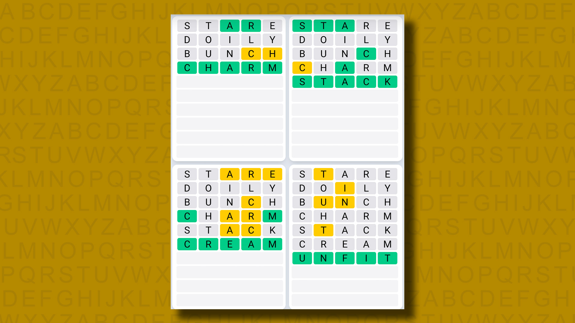 Do any of today’s Quordle puzzles start with the same letter?
