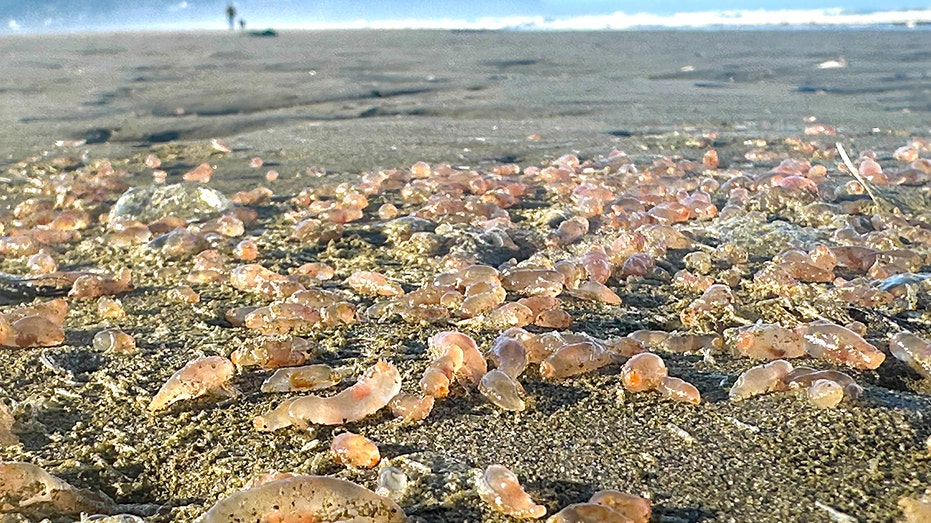 The translucent pink clear creatures cannot return to their habitat on their own — so they will most likely dry up and die.