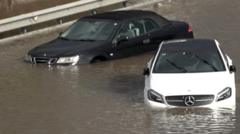 Video shows a flooded terminal inside El Prat airport and partially submerged cars on a highway.Original Article